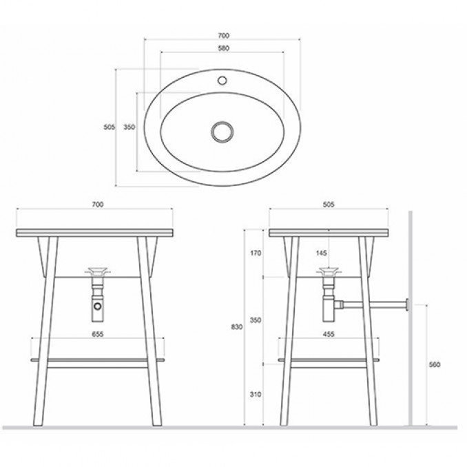 Lavabo COPEN sa postoljem i policom 700x500x825 i otvorom za slavinu matt white