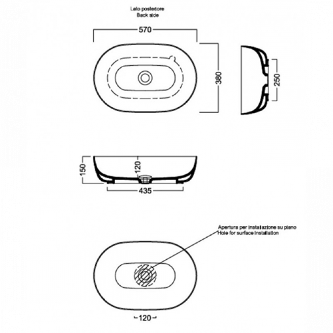 Lavabo nadgradni HATRIA HAPPYHOUR SLIM 12:00 570x380 glossy sugar paper