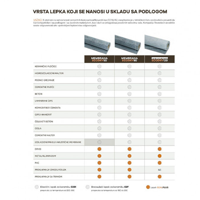 Kombinacija sa Revestech membranama: Kompatibilno sa DRY40, DRY50 I DRY120 sistemima za dodatnu hidroizolaciju.