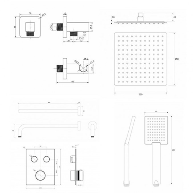 - Ruža tuša COPEN, kvadratnog oblika, dimenzija 250x250 mm, izrađena od nerđajućeg čelika S/S 304, sa hrom završnicom – pruža ravnomjeran, bogat mlaz vode i luksuzan osećaj pod tušem.