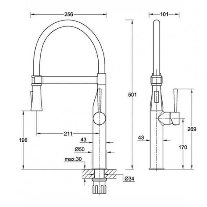Jednoručna baterija za sudoperu COPEN PEPPER A sa flex lulom 2F hrom sa 3 cijevi