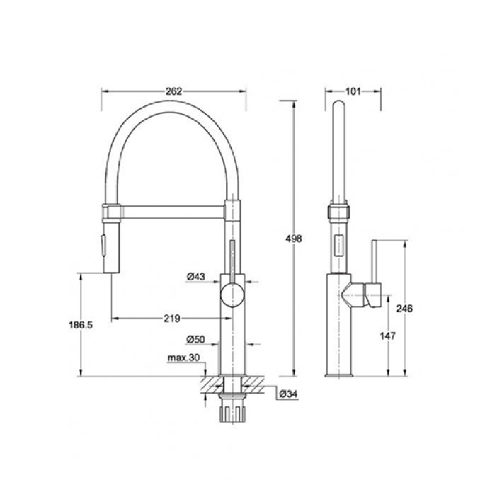 Jednoručna baterija za sudoperu COPEN PEPPER B sa flex lulom 2F hrom sa 3 cevi