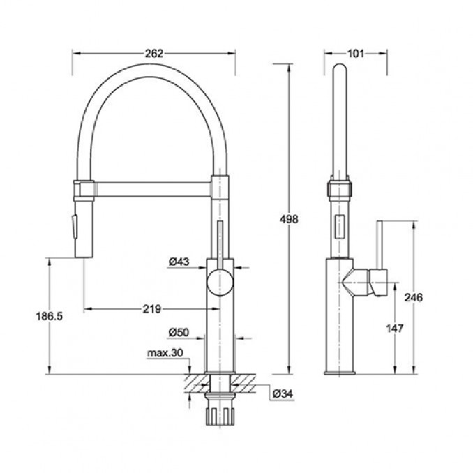 Jednoručna baterija za sudoperu COPEN PEPPER B sa flex lulom 2F mat crna sa 3 cijevi