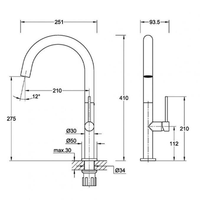 Jednoručna baterija za sudoperu COPEN SALT hrom sa 3 cijevi