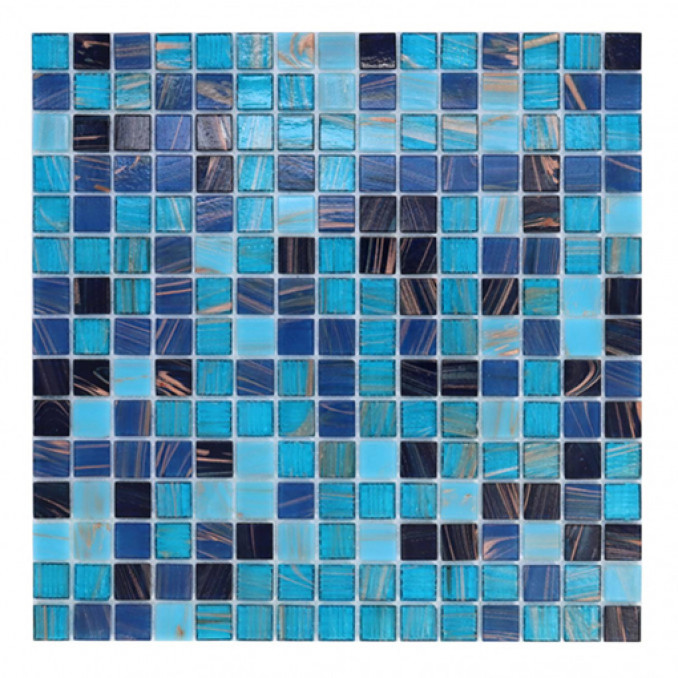 Stakleni mozaik GM012 dimenzija 327x327 mm predstavlja savršen izbor za oblaganje bazena, kupatila i kuhinja. Njegova plava nijansa donosi osvežavajući i luksuzan izgled prostoru, dok staklena površina reflektuje svjetlost, stvarajući vizuelnu dubinu i sjaj.