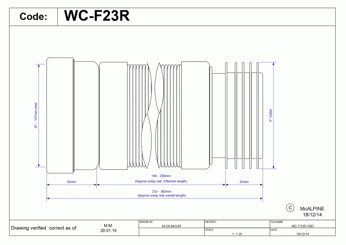 Priključak McALPINE za wc šolju fleksibilni 230mm-440mm