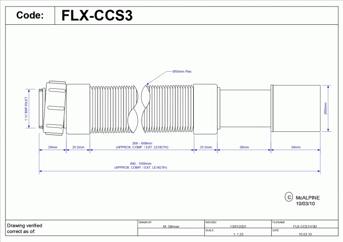 Sifon fleksibilni McALPINE 6/4 ø40 460-1000mm