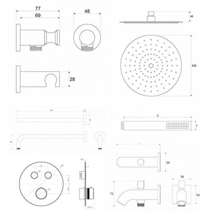- Luksuzno tuširanje uz nadglavni tuš fi250 mm