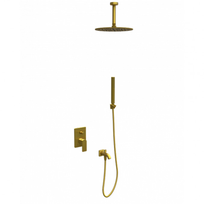 COPEN NOOK ugradni tuš set pruža savršen spoj sofisticiranog dizajna i vrhunske funkcionalnosti, idealan za stvaranje luksuzne atmosfere u vašem kupatilu. Ovaj komplet sadrži sve neophodne elemente za potpuni užitak tuširanja: ugradnu bateriju sa prebacivačem, ružu tuša prečnika Ø250mm, vertikalni okrugli držač ruže dužine 300mm, elegantnu tuš ručicu, izliv sa prebacivačem, tuš crijevo dužine 1,5m, i držač tuš ručice, sve u prefinjenoj boji brušenog zlata.